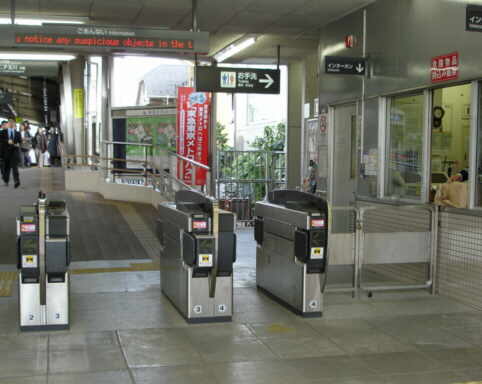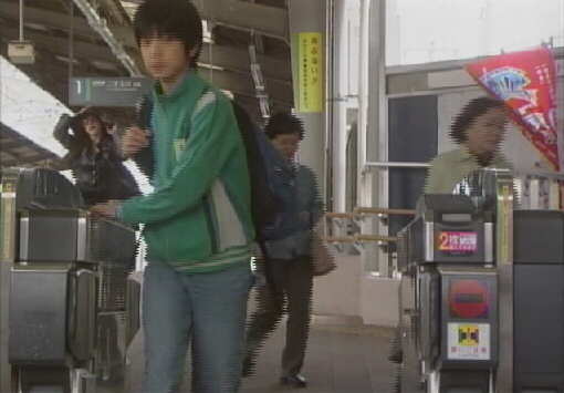 | 第1話(4/12)で遥生が通過した改札、追いかけてきた嵐子が通れなかった改札 (右はキャプチャー画像) |