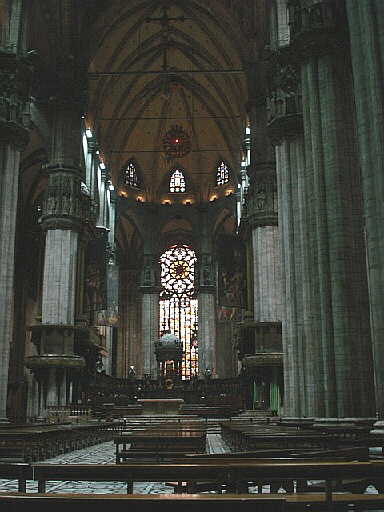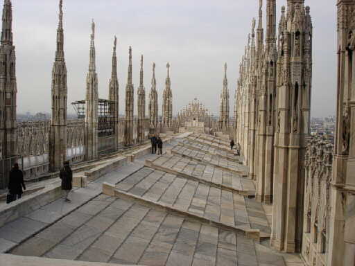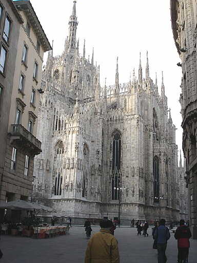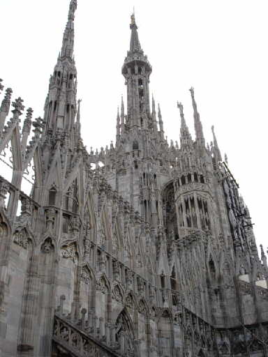 | まずはミラノのドゥオーモの見学。 ドゥオーモとは大聖堂の事、各都市毎にあるがミラノのドゥオーモは ゴシック様式で建てられ、その尖塔はとても美しい。 |