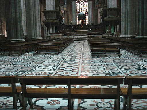 ドゥオーモの中は 荘厳な雰囲気でした。 床の大理石の幾何学 模様がとても美しく 素晴らしかった。 何しろ完成するまでに500年を要したのだから。 |