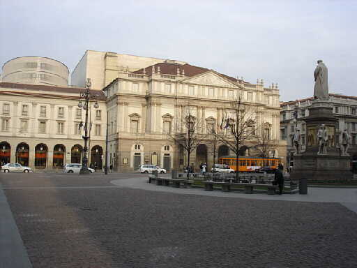 ギャレリアを通り抜けると スカラ座が見えてきます。 2004年12月には改修工事を終え盛大な披露公演がありました。 |