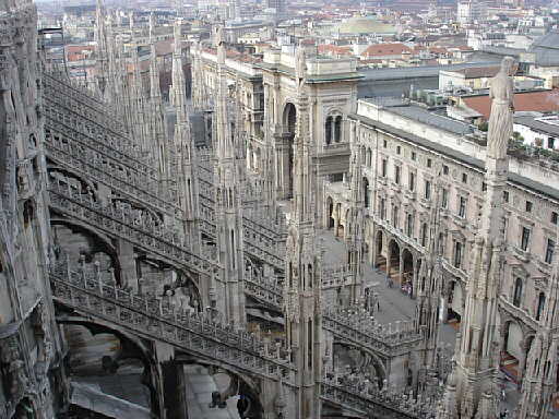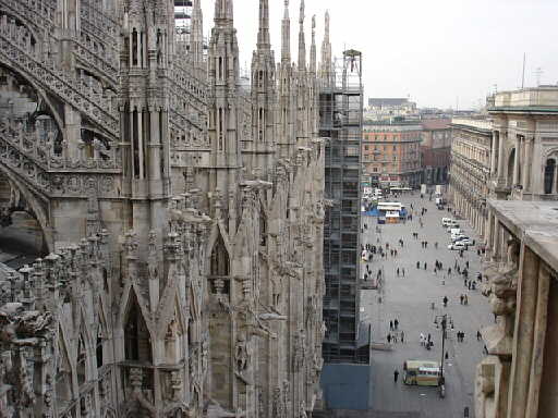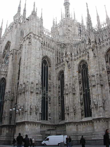 ドゥオーモの威容を横からショット そびえる尖塔の数は140余り |