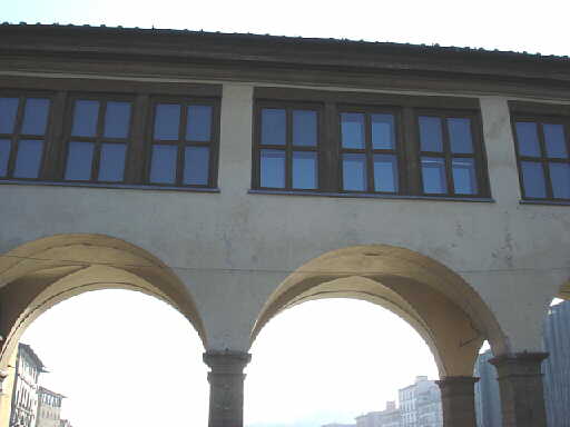 フィレンツェの支配者メディチ家の人々が 人々がウッフィツィ美術館(当時の政治を行う事務所)と住居のビッティ宮殿を行き来する為に作られた回廊で今は美術館として限定開放されている |