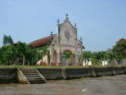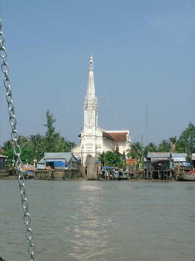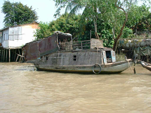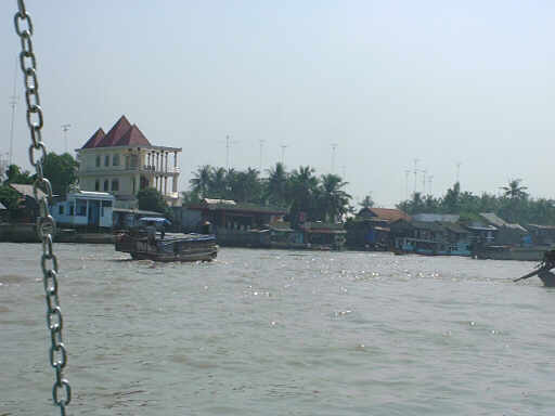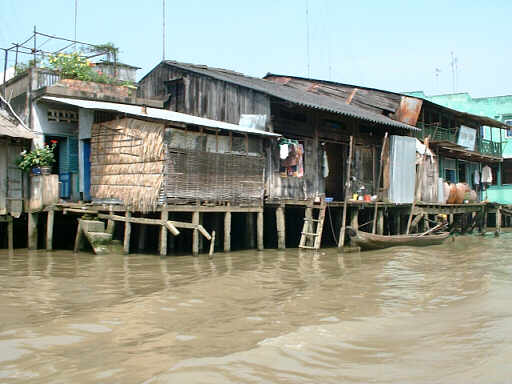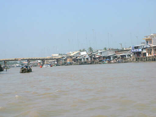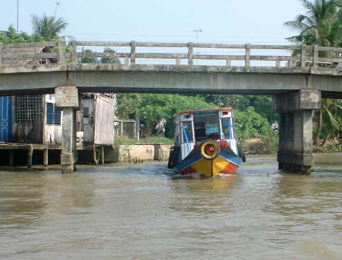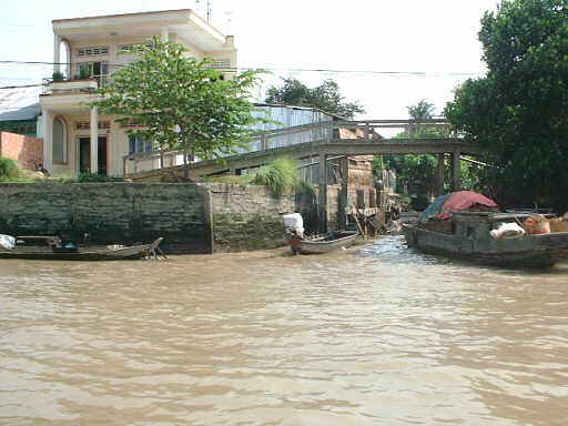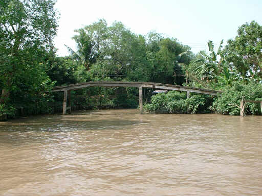 河岸にはちょっと貧しい集落が点在します。 またベトナムらしい橋もありました。 |