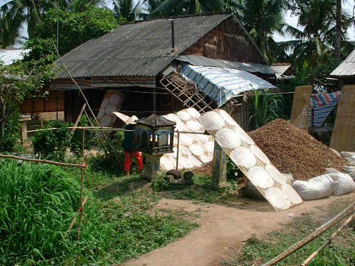蒸した皮のあら熱をとり、少し乾かします。 それを今度は外で天日干し、これで完成。 |
