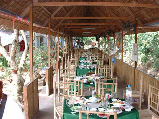 バナナの葉で葺いた屋根のレストラン |
