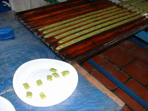 次に訪れたのは、キャンディー工場。 大きな鍋で練っています。 同じ長さに切って仕上げます。 |