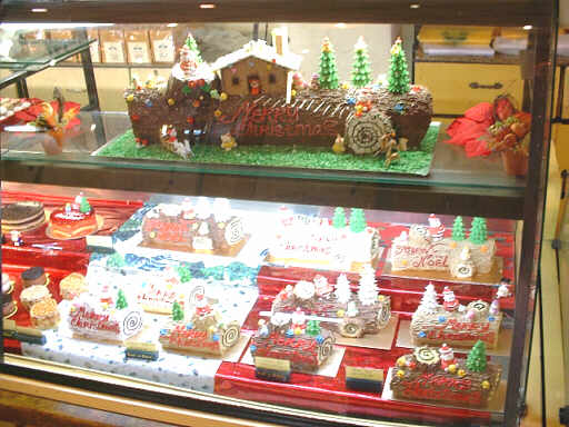 ショーケースは季節柄クリスマス用のケーキでいっぱい