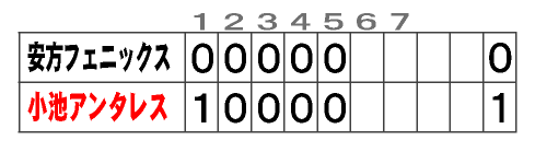 - 4回裏4番フォアボールのあと2盗、5番のピッチャーごろの間にホームをつくもタッチアウト、続く6番三振でチェンジ