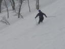 | 今日の天神平は思いの外雪質が良く、正月に勝るとも劣らずのパウダーでした。 で、そんなパウダーを気持ち良く滑るmさん。 撮影場所は峠リフト。ここは未圧雪ゾーンで面白いです。 |
