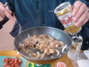 | たまねぎ刻み、プチトマトに、鰯の缶詰、日本酒で味付け。 | ||||