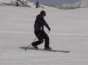 | Mさんは今回T-2Xのデビュー戦です。 栂池は広大&長大なゲレンデですから、練習にピッタリですね。 普段滑ってる水上地域だと滑走距離は短くならざるを得ないので ”滑り込む”という練習が出来ませんが、ここは別。 いくらでも滑れます。実際脚パンパンになりましたよ。 |