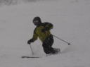 | 峠リフトの運行開始を待ち、踝までのパウダーを楽しみます。 年末以来雪が降っていないので、軽くはないですが。 |
