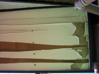 材質的には最近ではケイ酸カルシウム板や窯業系のものが主流のようですがちょっと前まではベニア製も多かったと思います。ケイカル板にSOP(合成樹脂調合ペイント)を塗って仕上げると、まずかなりの確立で塗装が剥がれてしまいますし、年数のある程度たってしまったベニヤの軒ウラにSOPもしくはウレタン系の塗料の組み合わせでは,ふくらみやささくれて傷みが進む事もあります。材質に合わせた塗料のチョイスも重要だと思います。 |