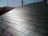 陶器瓦の屋根 陶器製の瓦で上薬のかかった焼き物の瓦です、在来工法の日本式家屋でよくつかわれている屋根材だと思います、適度に通気性があり、わが国の気候風土にもあった屋根材だとも思います。 長所とも短所ともなりうると思いますが重量がかなり嵩むため台風には強いかもしれませんが一般的に地震には弱いと思われます。 はっきり長所だといえるのはメンテナンスフリー、瓦自体に塗り替えなどの手入れが全く必要ないことです。 ただし、棟などに瓦壁という漆喰やモルタルがつめてある箇所がございましてその部分は手入れが必要です、また一階の屋根の場合2階の外壁との接合部分に水切りトタンがほとんどの家屋で設置してあります、当然その部分はトタンですので塗り替えなどの手入れが必要になります。 ![]() ↑陶器瓦と水切りトタン(瓦は塗装のため養生してあります) |