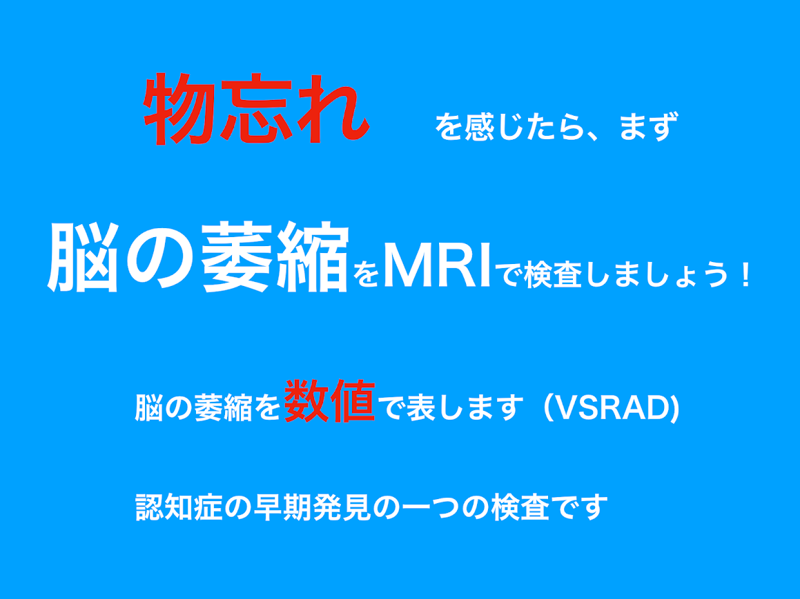 VSRADはこの萎縮の程度をみる検査で、アルツハイマー型認知症の早期発見につながります。