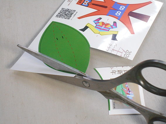 3 点線全てに切り込みがはいったらハサミ で黒の実線部分を切ります。