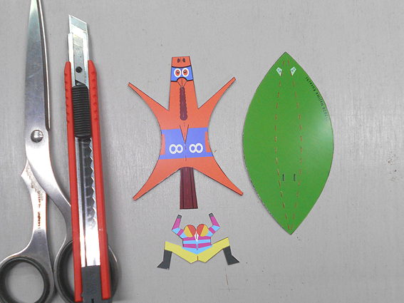 6 三つのパーツそれぞれ点線にそっ て図のように折り曲げます。