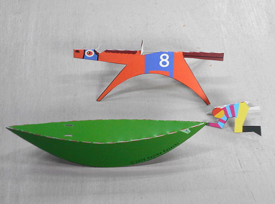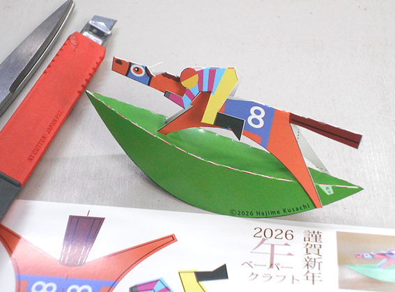 5 三つのパーツの切り取り終了。 馬の背中と耳の部分の黒線部 に切り込みをいれます。