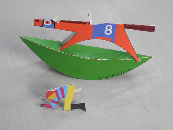 7 馬の前足を台の切り込みに刺し込 み、後足はのり着けします。