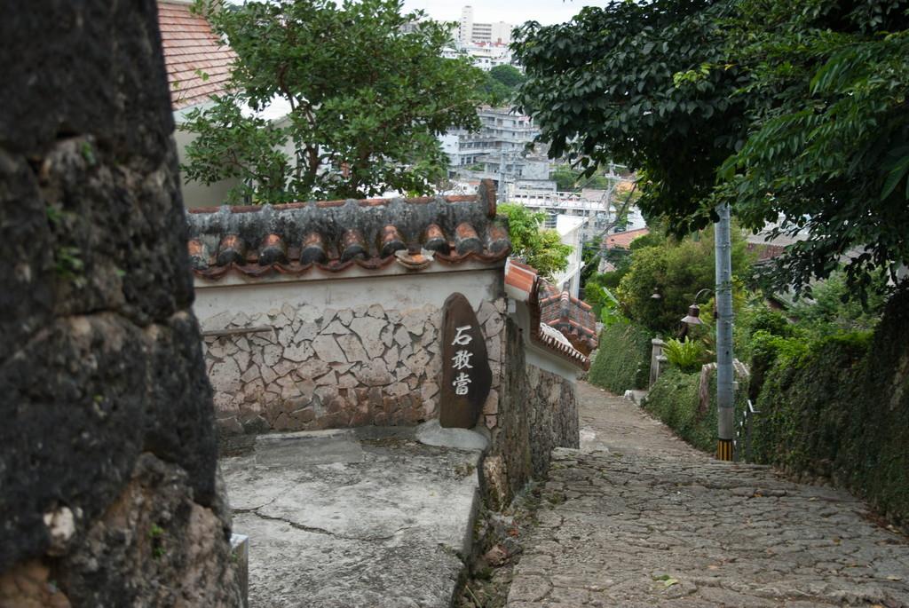 | 首里城公園の南崖にある、金城町石畳。急な坂道を降りては見たが崖の上に戻る元気が失せてタクシーを拾う羽目に。 |