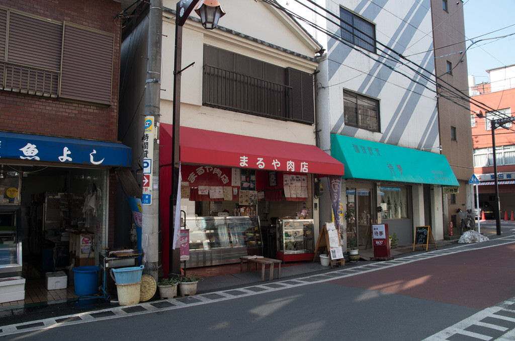 まるや肉店の名物コロッケには「とうがらし」というのがあるが、訪れた時間が早過ぎて準備中だった。 |