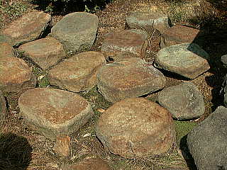 | 丹波鞍馬石 | 京都府亀岡市にて産出される山石。石色は茶色で、ほとんどが沓脱石や飛石として使われている。鞍馬石の代用品として使われてきたが、現在、産出が少なくなっている。踏面が自然のものが減少し、加工したものが近年多い。別名、丹鞍と呼ばれる。 |
