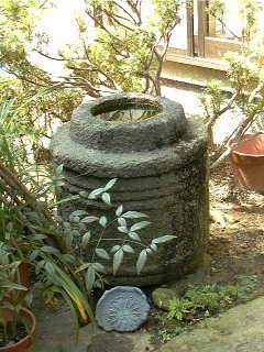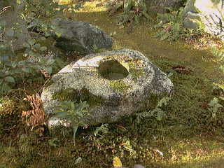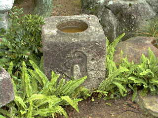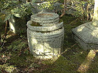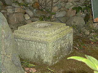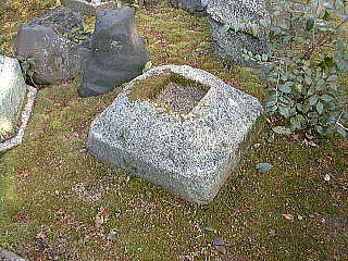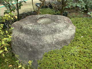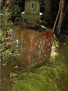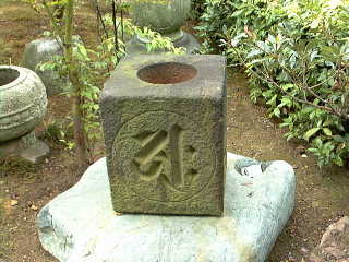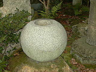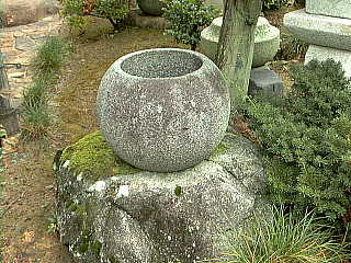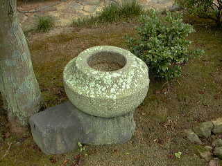 | 礎石形 | 古建築の柱の下に用いる礎石を手水鉢に用いたもので、特に寺院に用いた礎石を伽藍石といい、それに水穴を掘ったものを「伽藍石手水鉢」と称し、また、禅宗様建築の礎石を用いた物を「礎盤形手水鉢」という。特殊なものとして鳥居の礎石を利用したものもある。 |