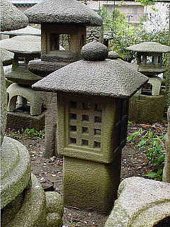 | 蛍燈籠 | (京都・桂離宮):竿は円柱、中台・火袋は四角形、笠も四角形ですが自然に近い姿をし、宝珠がないのが特徴です。 |