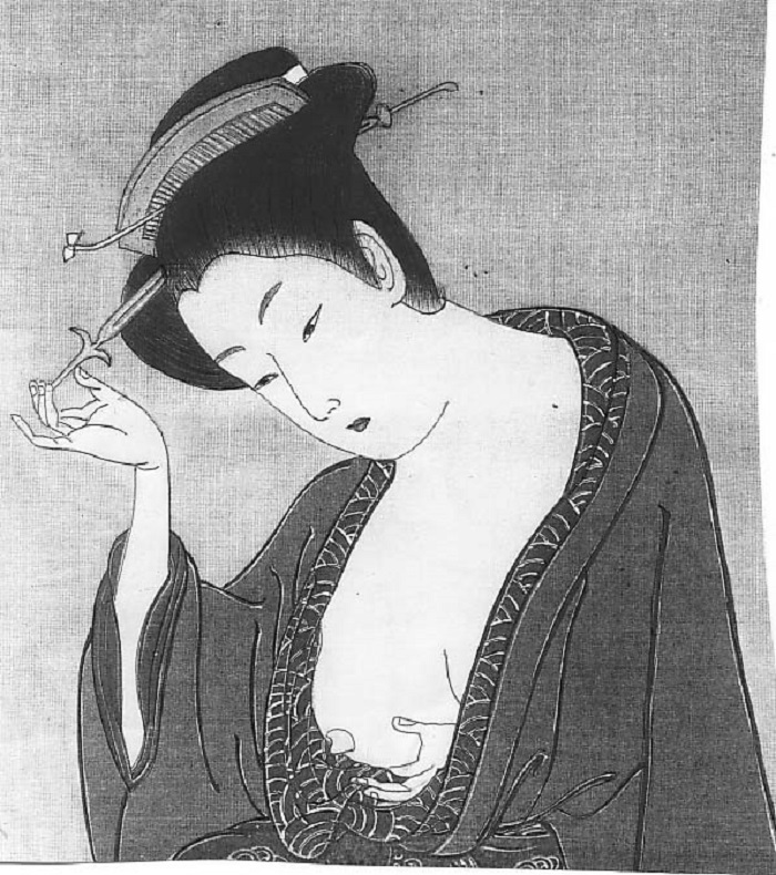 浮世絵から(乳を与える女)瑚竜斎筆(1772年頃)