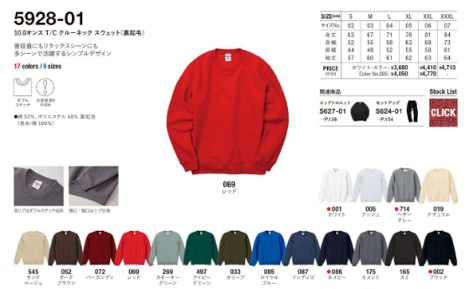 トレーナー裏起毛(5928-01)¥3,680の場合