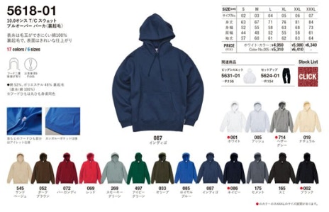 スエットプルオーバーパーカー裏起毛(5618-01)¥4,950の場合