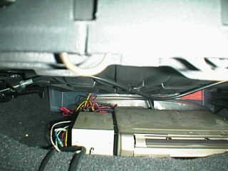 本体は助手席の下に置いてある。左の箱はジャイロです。この時代外付けでしたね。