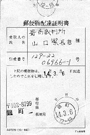 | 高裁判所山口繁長官宛に平成一四年二月一七 |