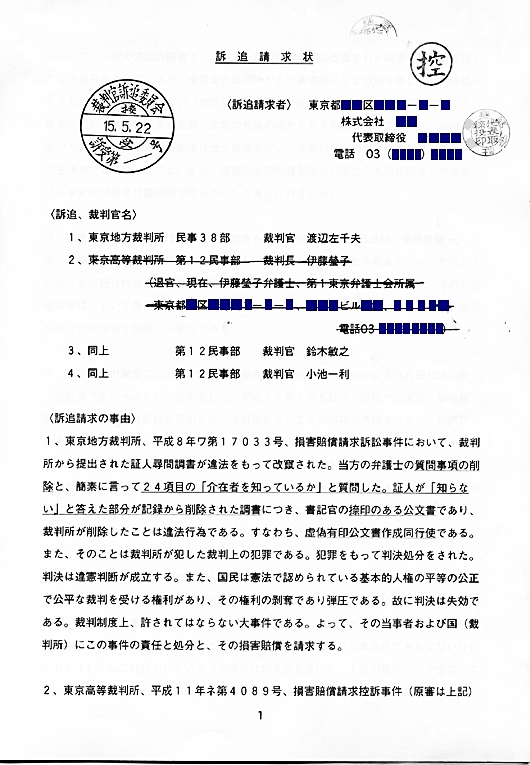 | 真実の解明と処分と損害賠償補償を裁判官訴追委員会に請求いたします。 |