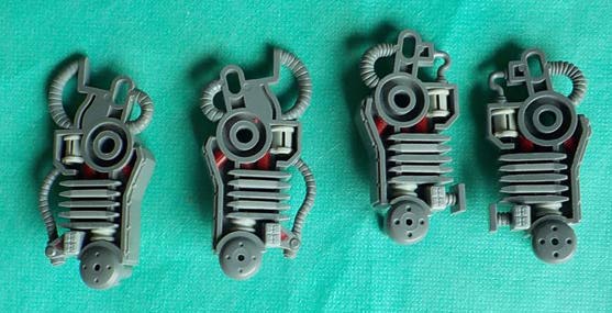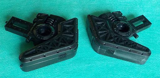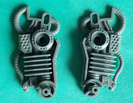 足部品。 トラス構造に支えられた装甲の真ん中にパーティングラインが走っています。これをひたすら消していきます。 自然排気をしていると思われる排気口や点検ハッチを思わせるモールドの真ん中にもパーティングラインが走っていますので、ここも処理しなければなりません。削り落とした方が良いか・・・。ゲート跡を処理しながらパーティングラインで発生する段差を無くしていきます。 |