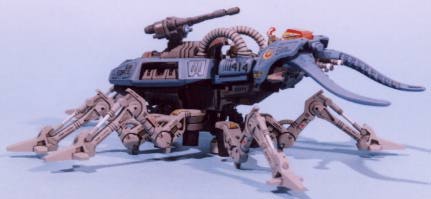 歩行ギミックは、サイカーチスとのそれと同じ、6本足であるモノの、4本の足のみが歩行に影響するという作りになっています。歩行以外の特徴的ギミックとしては、角の開閉。ギミック部品に直接つながっている4連装砲もが前後することも、メーカーとしてはギミック的特徴としてとらえています。 今回ダブルソーダを改造するにあたり、やっぱり、翼の開閉は最低限必要な部分でした。それ以外に何か、とは考えたのですが、結局思いつきませんでした。 |