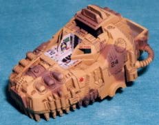 今回は砂漠迷彩にしました。 先に薄いブラウンを塗装しておいて、斑状に濃いブラウンを塗装しました。 私が迷彩塗装をする場合は、共和国軍は斑状の迷彩、帝国軍は縞模様の迷彩、と塗装方法を分けることで、共和国軍と帝国軍の考え方の違いを演出しています。 |