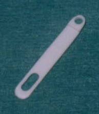 円盤部品と実際に給油等を動かすアーム部品をつなぐクランク部品を作ります。長さは現物あわせです。できあがった円盤部品と、アーム部品の動く範囲に合わせて決めました。片側がオーバル状(小判状)の穴になっていますが、ここで動きを逃がします。クランク部品の穴が両端とも軸ぴったりの穴では、給油塔の可動範囲を超えて、給油塔を動かす部品が左右に大きく動いてしまうのです。そこで、動きを確認しながら、給油塔が最大限に動いて、それでいて可動範囲を超えて引っかかりとならないような、大きさにまで穴を横に大きく広げます。 |