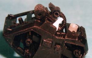 更に歩行のためのギミックパーツとボディーパーツを装備するとこんな感じです。ボディーパーツにはなんら加工をすることなく、作った部品が伸びてきます。しかし、歩行のためのギミックパーツは、一部に干渉が見られたため、一部削って調整をかけました。