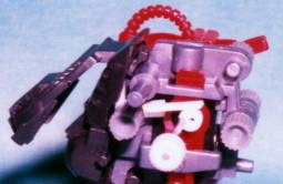 ゼンマイの捲き軸に、厚さ1.5mmに輪切りにした5mmのプラ棒を接着します。もちろん、中心からずらしてカムとします。足パーツ腕パーツを意識しながら、既存のギミックに干渉しない位置に接着します。 |