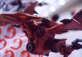赤いストームソーダー。飛行形態のデスクトップモデルとして完成させられています。 |