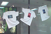 会場の一角には、販売コーナーも設けられ、オリジナルTシャツや、各種カードセット、絵本など販売されています。 Tシャツは写真作品をアレンジしたもの。好評です。 オリジナル・Tシャツはギャラリーショップで売っています! |
