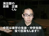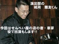 続いては、せんべい屋の店の者と田崎役の城所 雅友くんと中学生四役の高橋 正徳くんです。