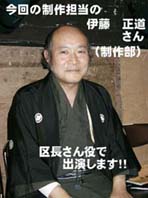 そして、三月までの記念公演全ての舞台統括の演出部の黒木 仁さんは錦葉役で、今回の制作担当の制作部の伊藤 正道さんは区長さん役で、それぞれ出演もなさいます。