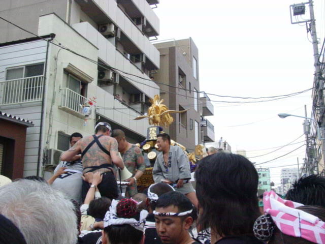 やっぱり三北神輿はいいね〜かっこいいよ。言問通りを進むともうすぐ終了です。 私も何回か入らせてもらいました。雨も降らずに無事今年のすべての渡御が終わりました。三北神輿の渡御は実に楽しく、今年は特にドッキリもあったりでとっても楽しい2日間でした。宮神輿渡御が来年改善されることを祈りたいです。 みなさんに挨拶をして三北町会を後にしたら雨がぽつりぽつり。町会渡御中に降らなくて良かったです。でもやっぱり三社祭には雨は付き物なんですね。宮神輿も雨にあたらないと帰れないのかな〜と思いつつ帰路につきました。 |