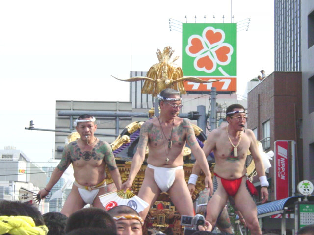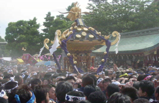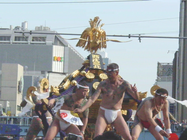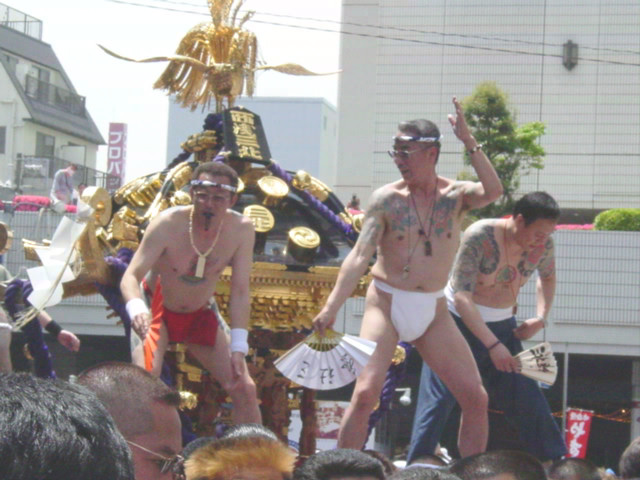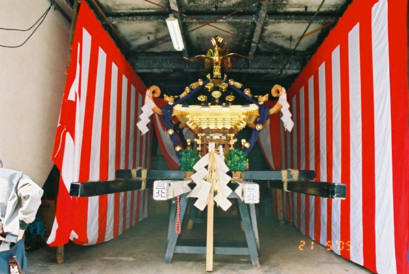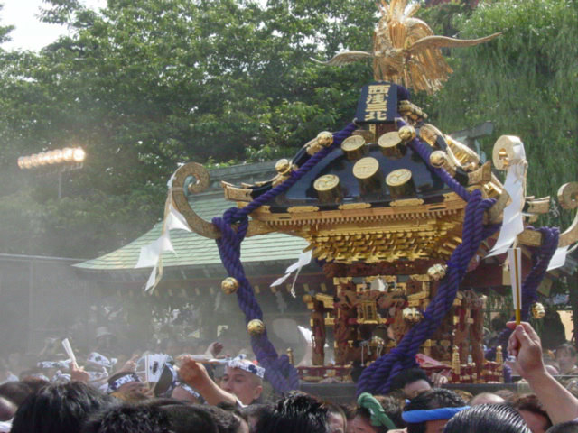 撮影しつつ、私もここで担ぎに入らせてもらいました。暑いし興奮してたし、抜けたときにはのど乾いちゃって自販機探し。そしたら近くでお兄さんたちが「かき氷」ナンパしてまして(爆)ずーずーしくも「あげる」と言われて「かき氷」頂いてしまいました。ちょうどのど乾いててグッドタイミングでした。助かりましたっ。お兄さん方、ごちそうさまでした。<(_