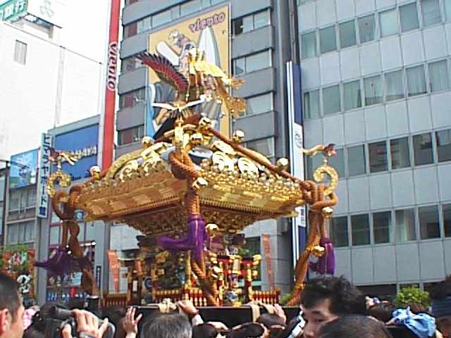 | 神田明神、江戸の祭りとして語らないわけにはいかない祭りがまだある。それが”神田祭”です。 本祭りと裏祭りがあります。ただ日程が三社祭と重なることが多いのがくやしいところ。浅草フェチの私は重なると神田を捨ててしまう。。。それが今年はうまいこと一週ズレて、なおかつ「大御輿」の初渡御が祭りの前にあると知ったら、5月はすんごい忙しい月になってしまうようだ。(笑) ココで紹介するのはできあがったばかり?の神田の大御輿です。本日水天宮から神田明神へ奉納されました。このいきさつについて詳しくは<後日改めて解説を載せるかもしれません。←誰かにリンクお願いしちゃうかも〜(^^ゞ まっあんまりくどくど語ってもしょうがない。私が一目で惚れた(爆)神田の大御輿をご覧下さい。 チラシから「大御輿」の概要(大きさなど)を抜粋してみました。大きさ想像してね! |