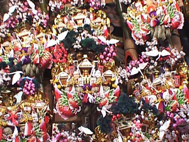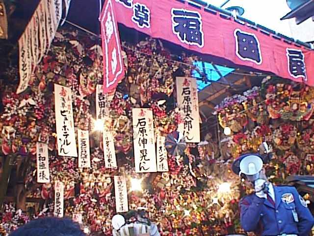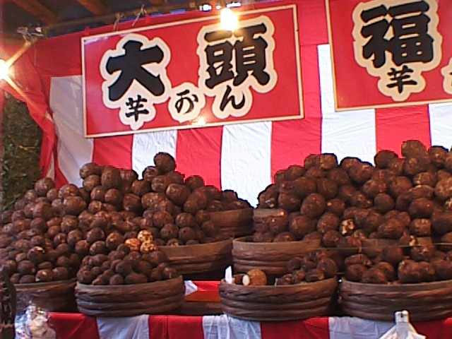 | 縁起物の八つ頭を売る店 | 有名人の名前もよく見かけます | |