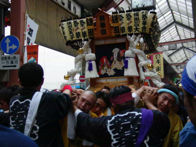 | 「江戸祭華會」御神輿は万灯神輿です。 江戸川区を中心に活動しており、毎年行われている、江戸川区のふるさと祭(10月28日)や、区の行事などに参加しています。 この御神輿には、浅草・大東京祭(江戸神輿大会)に参加したいという祭華會会員一同の夢が込められており、また、会員一人一人が力を合わせ、心を一つにして、すべて手作りで製作された御神輿、ということです。 神輿のご神体は会員の「熱い思い」意外ありえませんね。まさに粋の世界です。 |