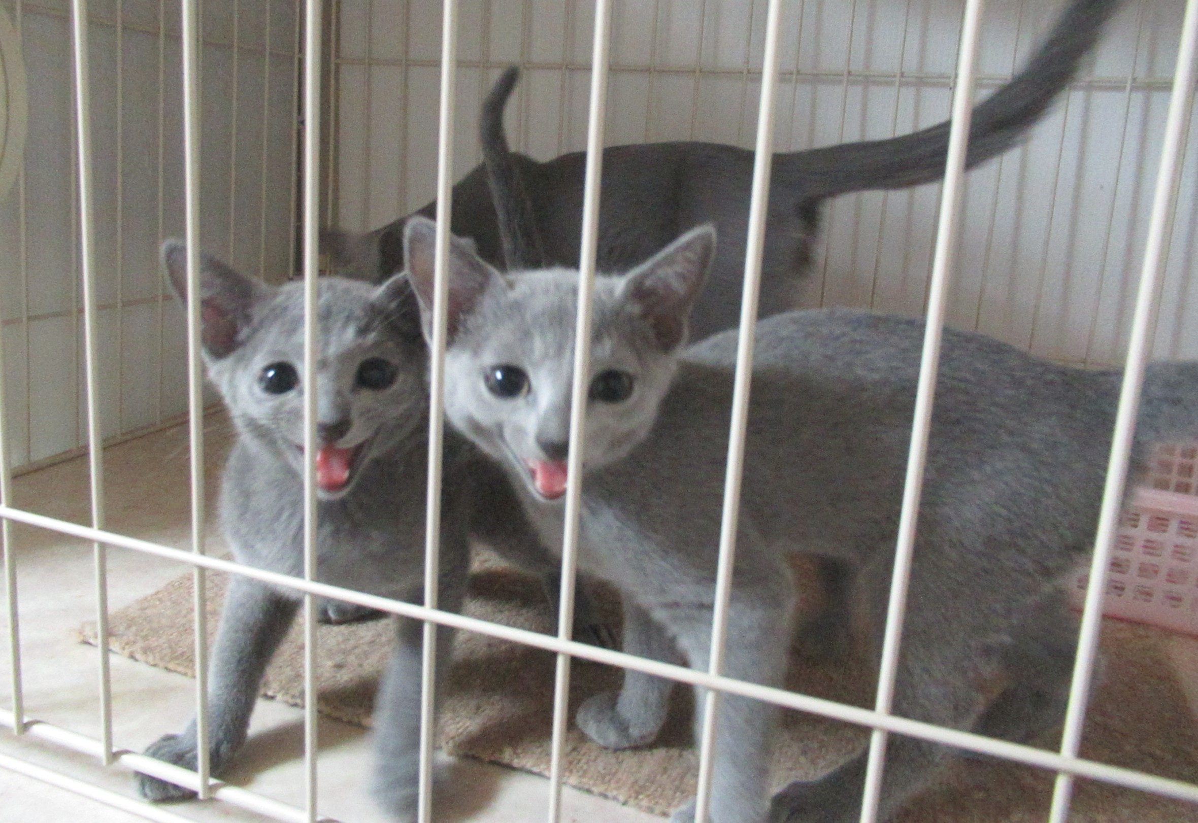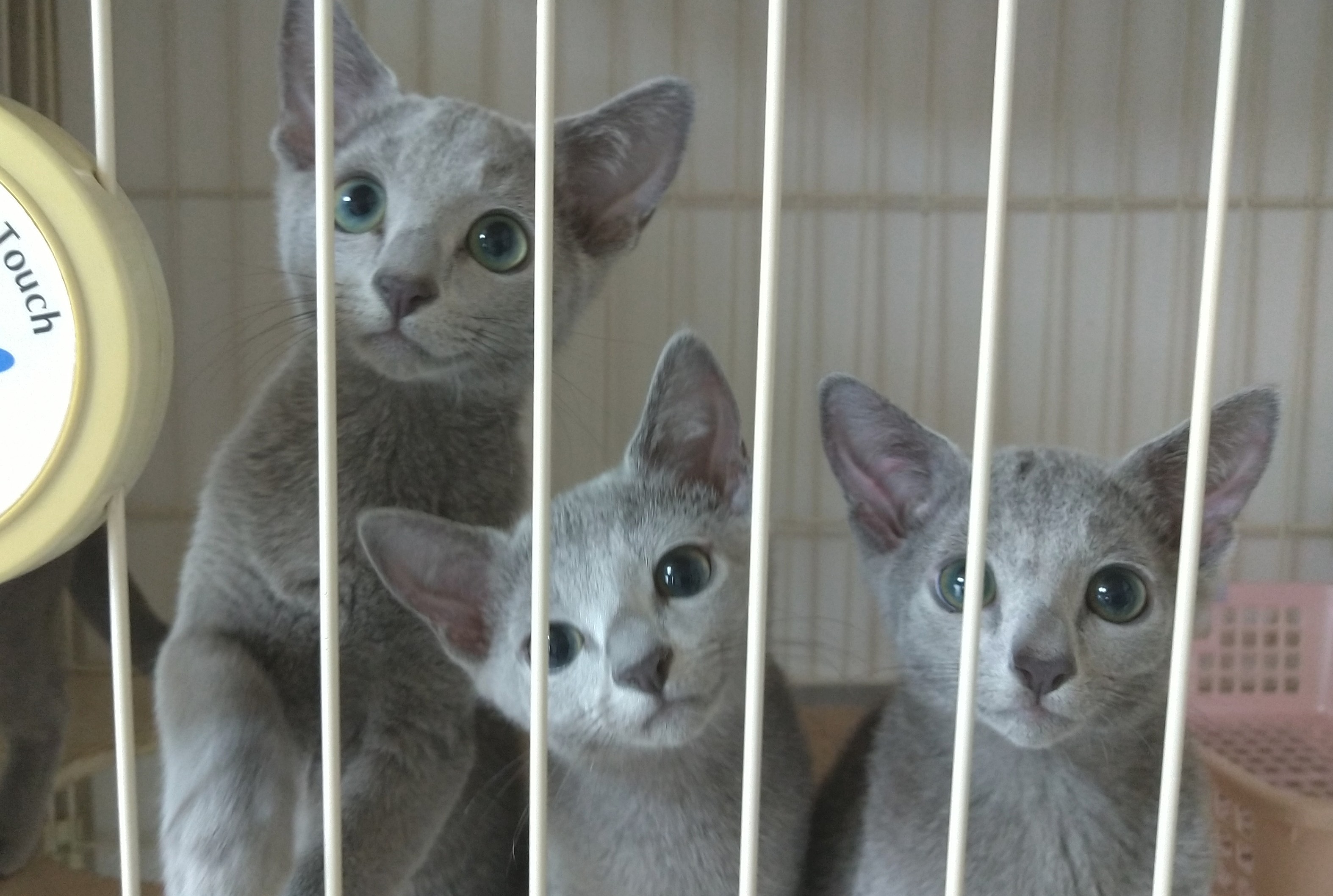 譲渡後はオーナーさんに対して必要以上に干渉するつもりはありません。 ですから、こちらが安心して子猫をお任せするためにも、各項目ご理解して頂きたいと思います。 「愛情と責任を持って一生可愛がってください」というのが私からのお願い事です。 譲渡後も飼育方法などお気軽にご相談ください。 親バカ話などもできる「猫親戚」としてお付き合いできたら嬉しいなと思ってます(^-^) 当キャッテリーの猫達はノミ・ダニ・寄生虫・皮膚病・Felv/FIVに感染しておりません(血液検査済)。 子猫はワクチン2回接種後、生後3ヶ月を過ぎてから健康状態を見てお譲りしています。 私製飼育マニュアルや猫グッズ(おもちゃ、フード、赤ちゃん時代の画像など)をお渡ししています。 CFAナンバーをお付けしますが、ブリードとしてお譲りする場合以外は〔繁殖不可〕として登録され、 繁殖することはできません。 初めて猫と暮らすという方、歓迎します♪(猫仲間が増えるのは嬉しい事ですからネ) ブリード希望、ショー出陳に興味のある方は、あらかじめご相談ください。 それに向いていると思われる子猫を優先的にお渡ししたいと思っています。 基本的に、ペットとして普通におうちで飼われる事を希望していますので、ショー出陳義務など一切ありません。 もしも楽しみとしてショー出陳したい場合には出来る限りお手伝いさせて頂きます(^^) ブリード希望の譲渡は慎重に検討させて頂きたいと思っています。 タイプ向上のためにスタンダードを学んだりショー出陳する意思がなく、子猫の販売利益のみの目的で 繁殖をする人にはお譲りできません。 ※キャットショーはロシアンブルーとしてのレベル・失格事項がないかなど公式に審査してもらえます。 純血猫のブリーディングにショー出陳は必要だと思っています。 また、ブリードをするには法律により動物取扱業の資格を取得しなければいけませんので、 取得済もしくは取得可能であることも条件となります。 まずはご相談ください。 譲渡希望の方や、見てから決めたいという方は見学OKです。(生後40日以降) あらかじめ予定等お問い合わせください。 子猫は、オーナーさん宅もしくは我が家で直接お渡しする方法でお願いしています。 (基本的に、譲渡までに見学に来て頂き、子猫をご覧になって頂く事が条件となります。 遠方の方はご相談ください。) 駅渡しや待ち合わせ場所渡しは行いません。 こちらの住所は京都府向日市ですので、関西圏は私がお宅まで連れて行きます。 関東(神奈川・東京)方面も出来る限り連れて行きます。 (その際には申し訳ありませんが交通費ご負担願います。) その他にお住まいの方はご相談ください。 空輸は子猫が小さいうちは負担になる事もありますし(実際は大丈夫と聞きますが…)、 何より私が心配で落ち着かないので(これが一番の理由)お断りしております。 ですので海外への譲渡は行っていません。※ I don't transfer to overseas. お問い合わせはメールにてお願いします。(アドレスは下記) ハンドルネームで譲渡価格のみを聞かれる場合等はお答えできません。 譲渡希望の方は、 氏名(フルネーム) 住所(大まかでも良い) お電話番号 飼育環境(家族構成、先住動物の有無、等) 簡単な自己紹介(年齢、猫歴など) を記入願います。 これらは譲渡時の参考にさせていただく以外には絶対に利用致しません。 こちらからの返信メールで当方の住所・電話番号等をお知らせ致します。 ご質問等ございましたらお気軽にどうぞ(*^-^*) あまりにもマナーを欠いたメールには、申し訳ありませんがお答えできません。m(_ _)m 一週間経っても返信がない場合、何らかのトラブルが考えられますので、お手数ですがもう一度送信してください。 多忙なため平日に返信できない事が多いですがご了承ください。 《お願い》 当方からメールを差し上げた後、何のお返事もいただけない方がいらっしゃいます。 無事にメールが届いたのかも判りません。 お手数ですがお返事くださいますようお願いします。 ★メールアドレス★